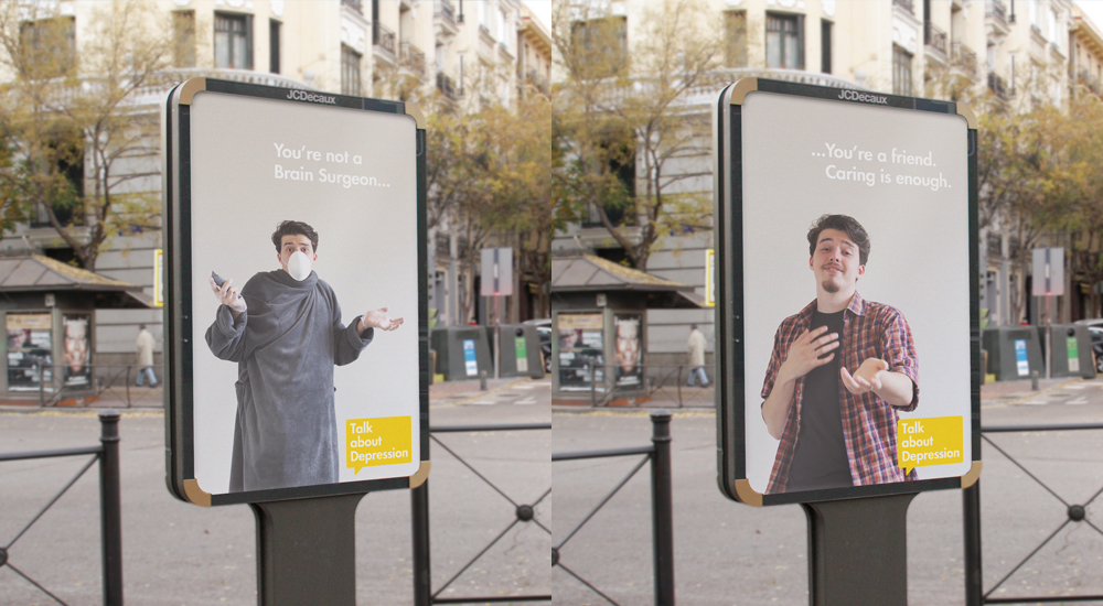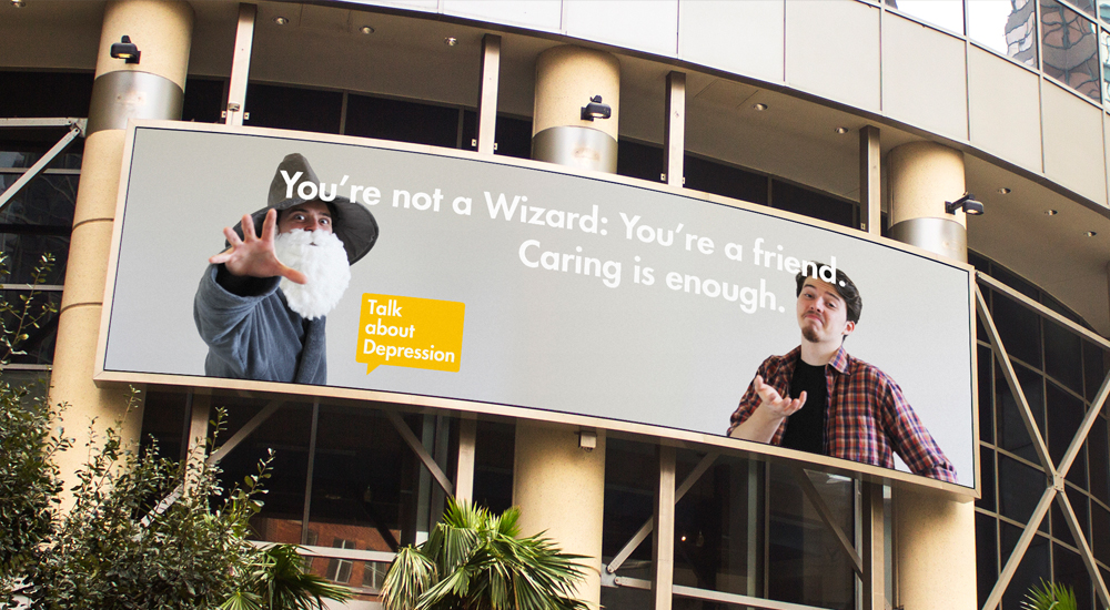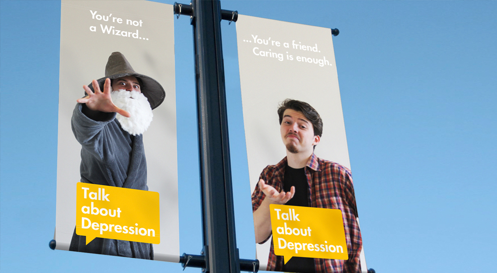 Talk about Depression doesn’t target people with depression—rather it targets the relationship between the sufferer and their loved ones. The presence of the campaign is light, and humourous: a surprising amount of the reluctance to talk about depression is fear of awkwardness.
